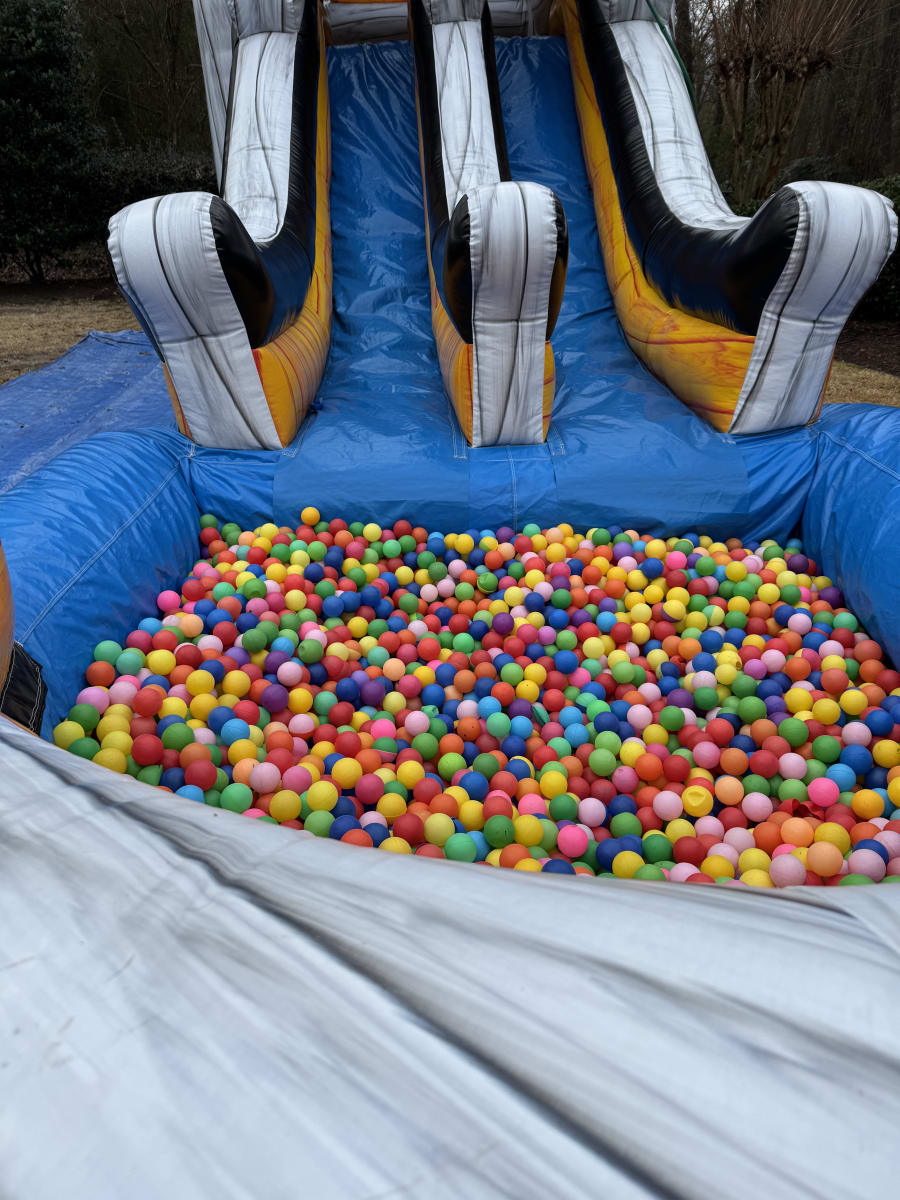 This Blue Marble 5 in 1 is perfect for any season. It includes a basketball hoop inside the bounce house and a slide at the end. One feature this slide includes is a water hose attached at the top that sprinkles down the slide to make it slippery fast.