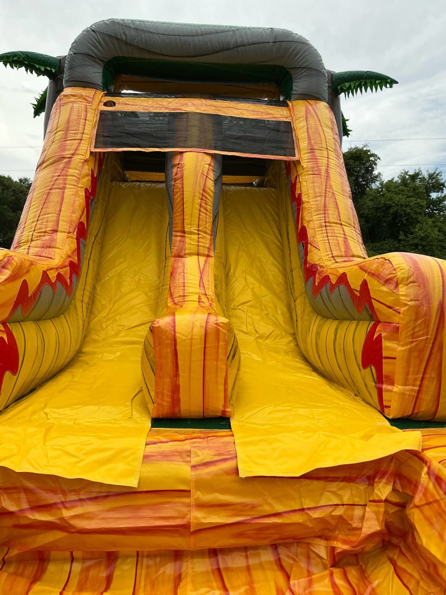Make your next party or event unforgettable with our bounce house 4 in 1 DINOSAUR WET in Goldsboro, Kinston, Mount Olive, and Pink Hill. This exciting Tropical 3-D Dinosaur Marble Bounce House/Slide is designed to delight children of all ages and transform your backyard into a prehistoric adventure! 🦖🌴