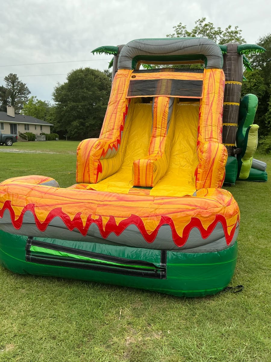 Take the stress out of party planning with our professional bounce house rentals 4 in 1 DINOSAUR WET in Goldsboro, Kinston, Mount Olive, and Pink Hill. We offer free delivery within 40 minutes of travel, ensuring your bounce house arrives clean, sanitized, and ready for fun. Our friendly team handles setup and takedown, so you can focus on making memories.