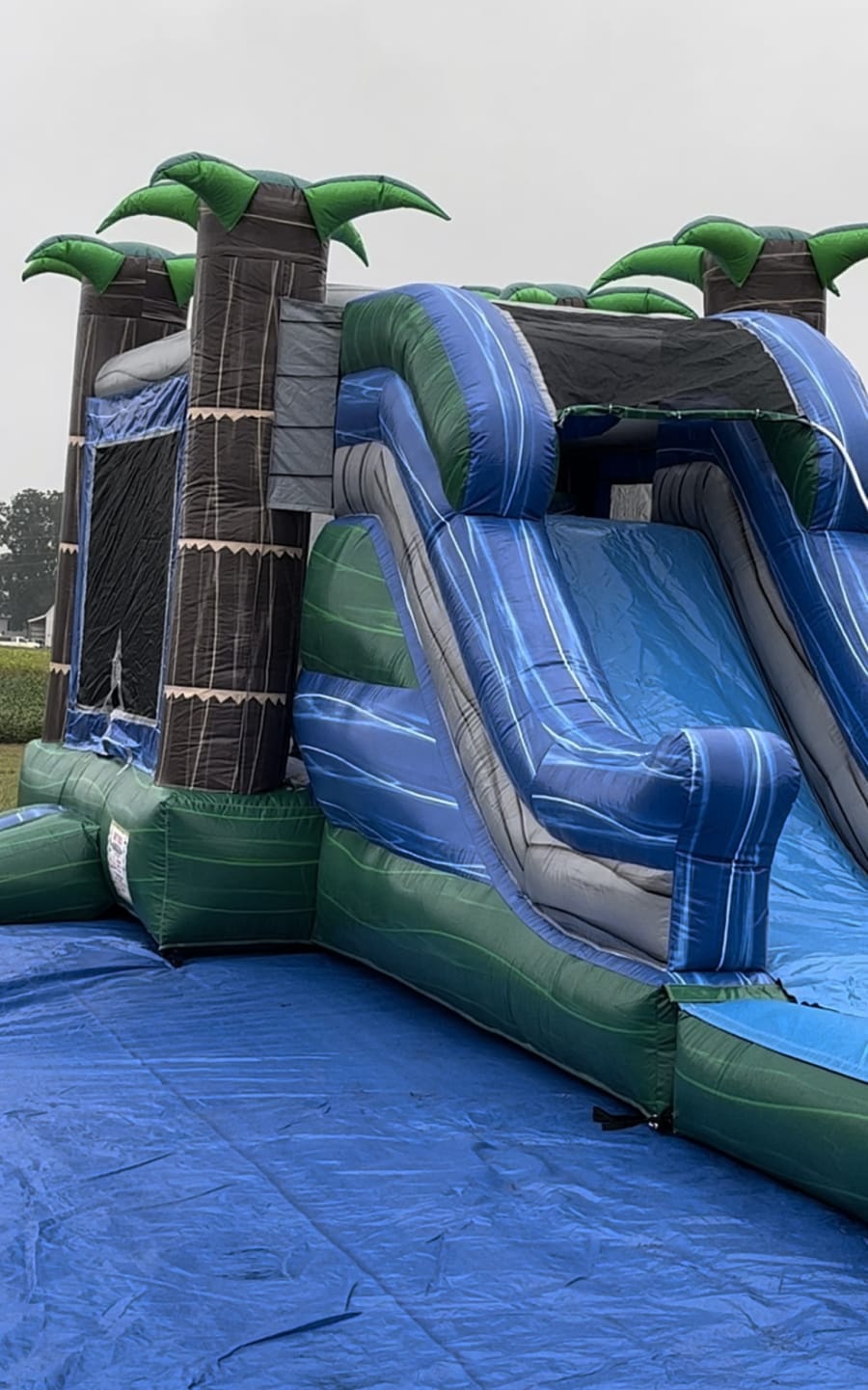 This Tropical Marble Bounce House/Slide is perfect for any season. It includes a basketball hoop inside the bounce house and a slide at the end. One feature this slide includes is a water hose attached at the top that sprinkles down the slide to make it slippery fast. We deliver to areas like Goldsboro, Kinston, Mount Olive, and Pink Hill. Free delivery for areas within a 40 minutes of travel.