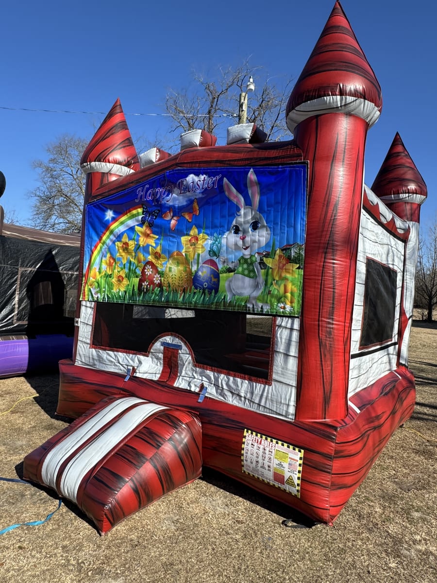 This Red Bounce House is perfect for any season. This is also great for the younger children, adults can also enjoy the experience. Kids will be able to jump for as long until they run out of energy. This Bounce House also has a Basket ball hoop and obstacles inside as well. We deliver to areas like Goldsboro, Kinston, Mount Olive, and Pink Hill. Free delivery for areas within a 40 minutes of travel.