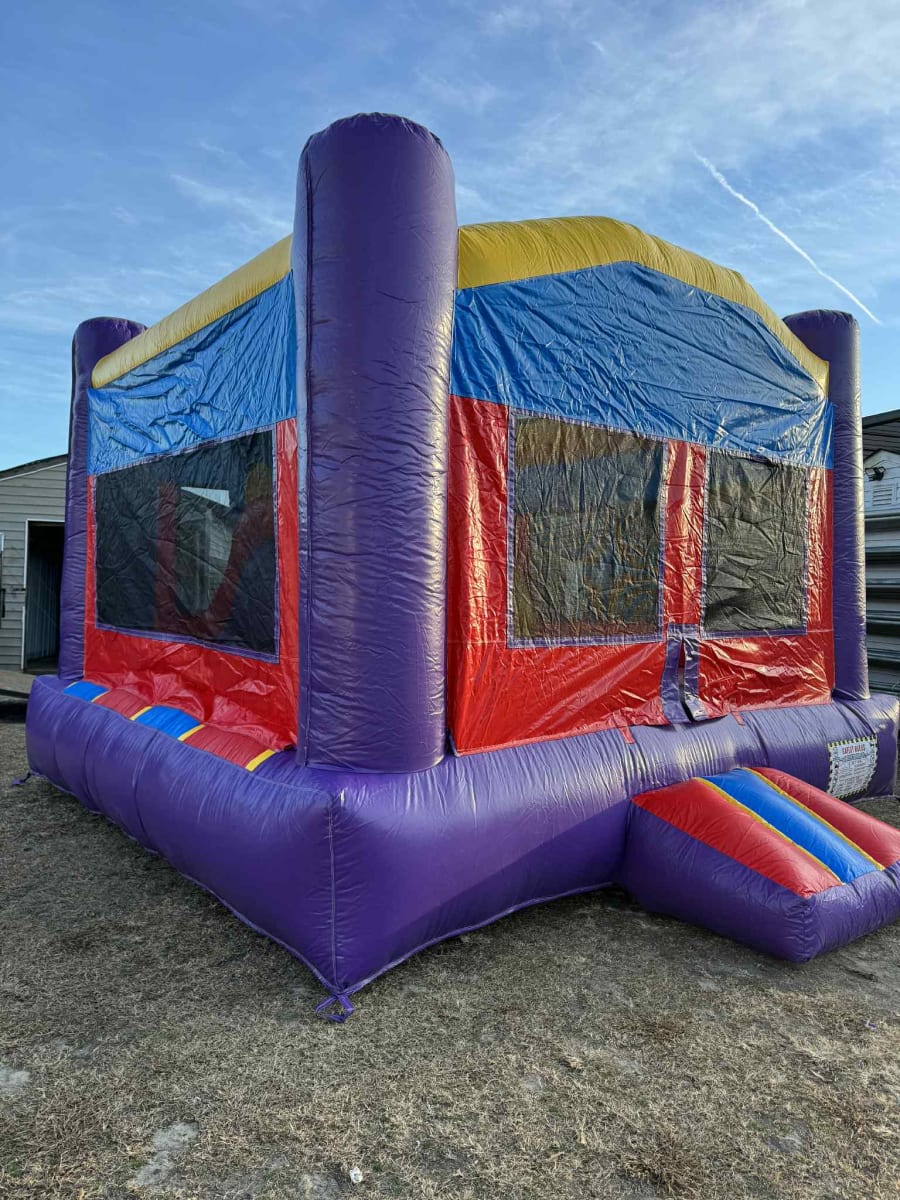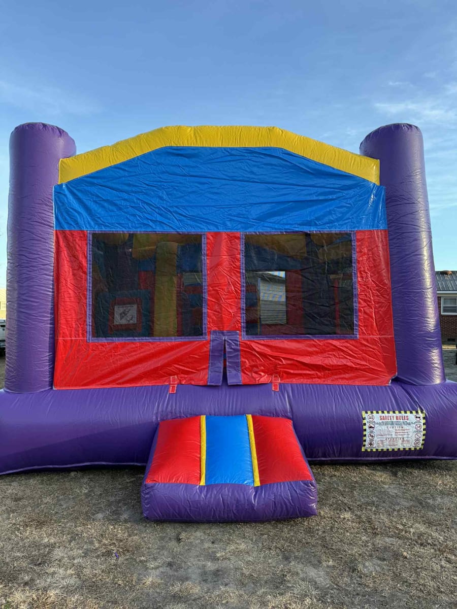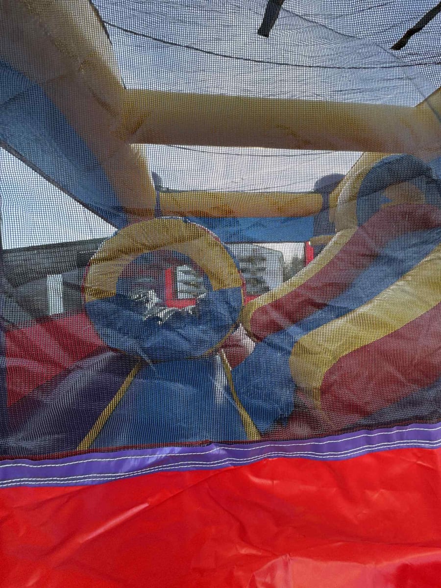 Bring high-energy fun to any event with the Playhouse Inflatable. Bright red, blue, yellow, and purple panels create a bold look that draws kids in. Inside, a built-in slide, crawl tunnels, and a mini basketball hoop combine bounce, climb, and shoot play in one compact unit. Perfect for backyard parties, school events, and family gatherings. 🏡🧒