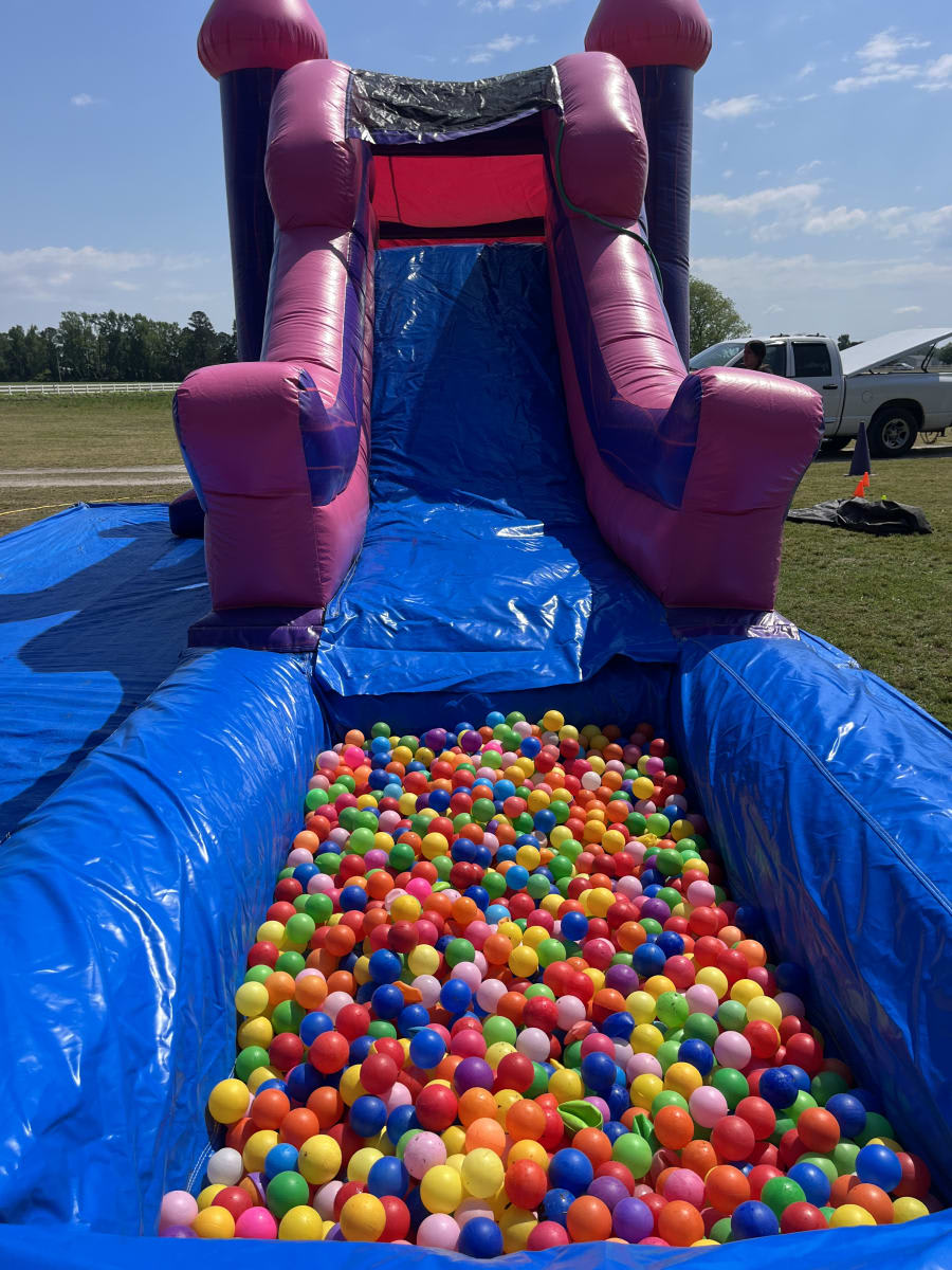 bounce house rental pink marble Bounce House 4 in 1 double slide BALL POOL in Goldsboro, Kinston, Mount Olive, and Pink Hill — A show-stopping, all-season inflatable that combines bouncing, sliding, and splash-ready fun. Perfect for birthdays, family gatherings, church events, and backyard parties. Bright pink marble styling creates instant photo moments and a party centerpiece kids remember. πΈπ