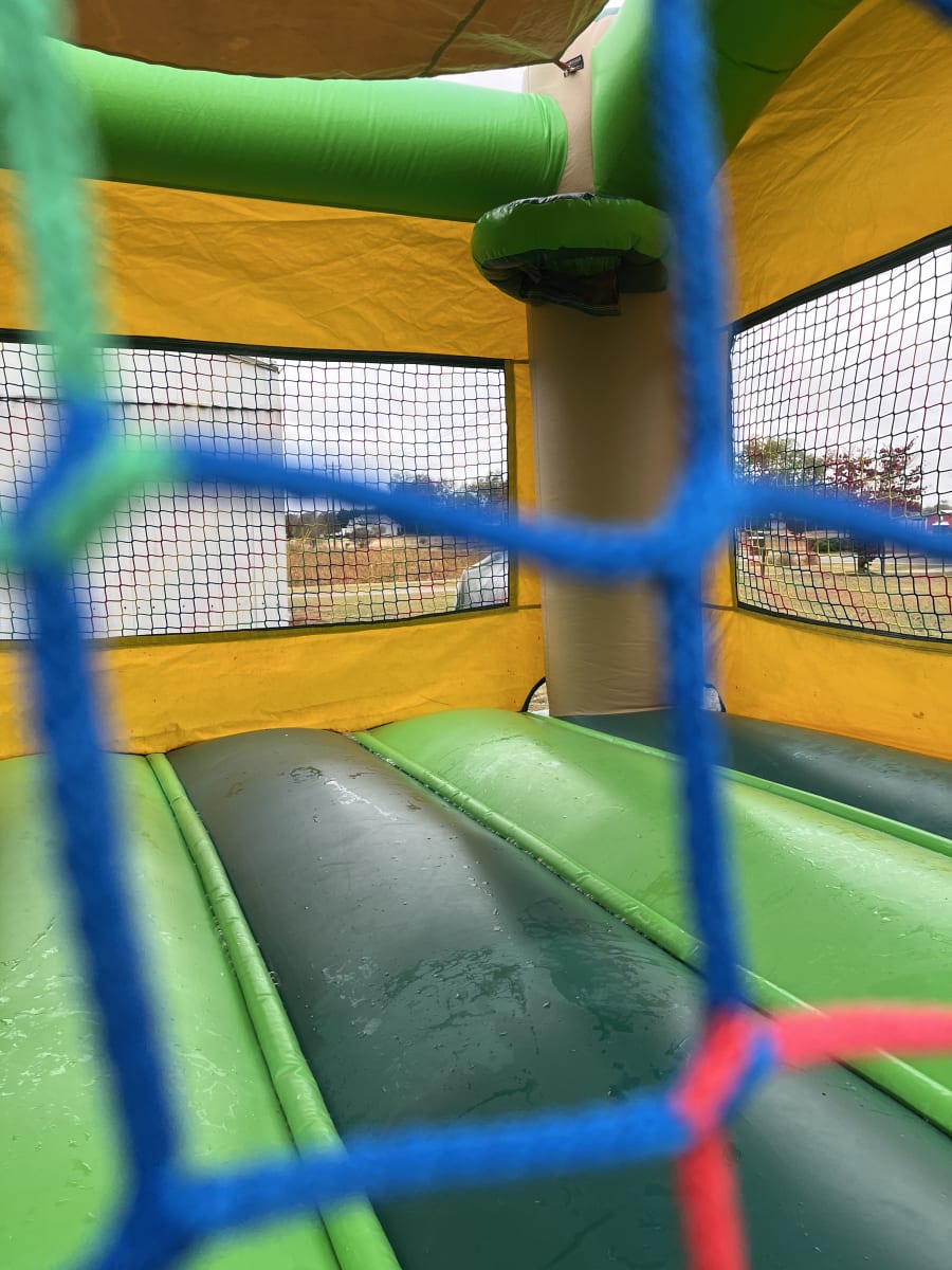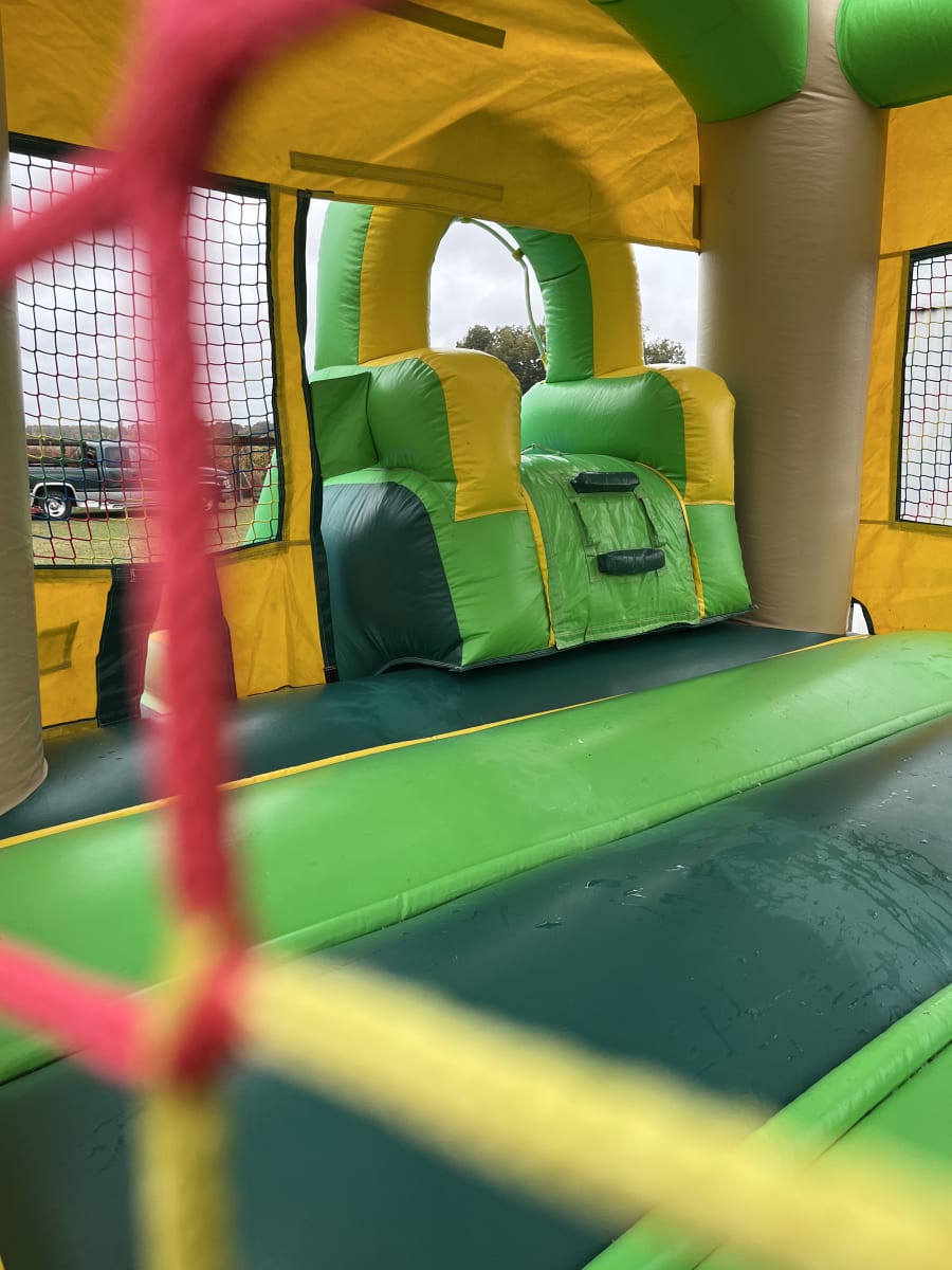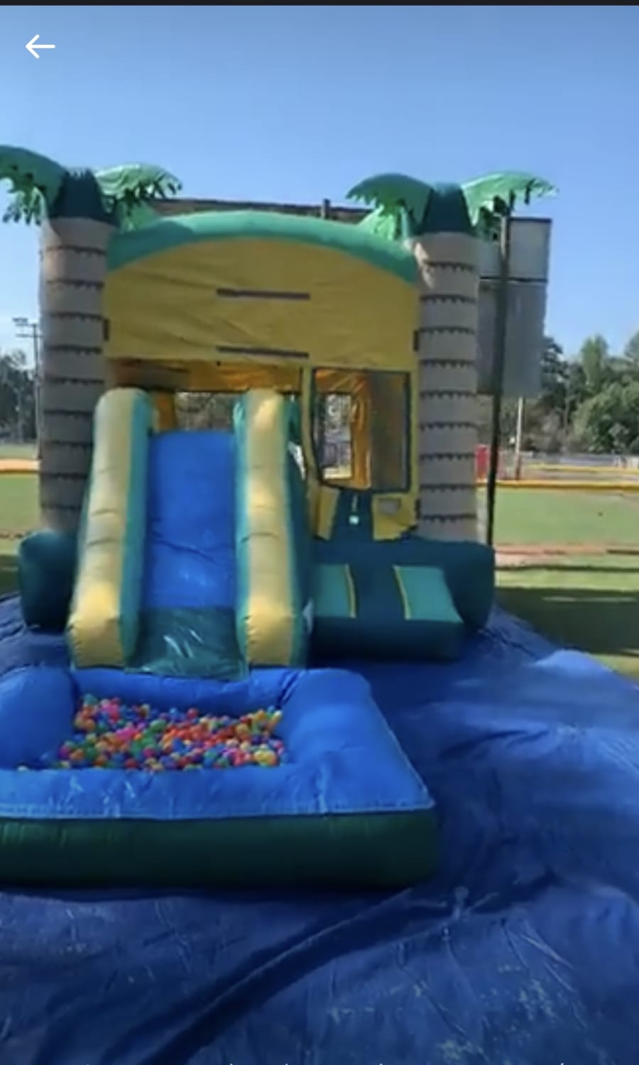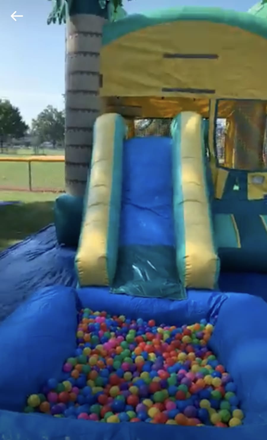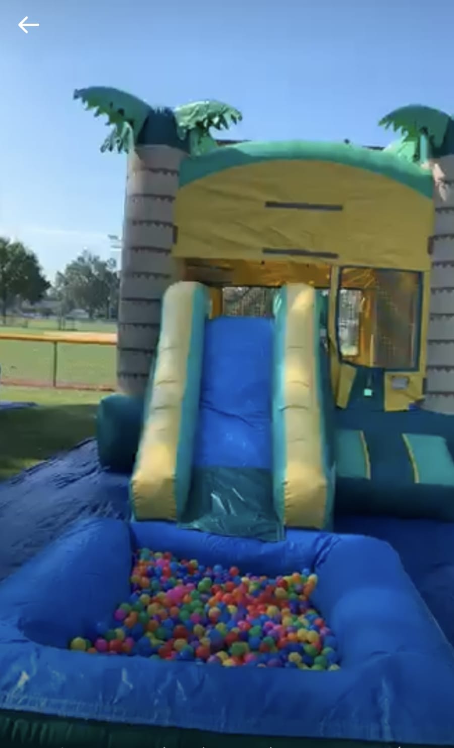 This Palm Tree Mini Combo is perfect for any season. It includes a basketball hoop inside the bounce house and a slide at the end .It is super fun for your guest and great for any party especially a tropical theme party .One feature this slide includes is a water hose attached at the top that sprinkles down the slide to make it slippery fast.