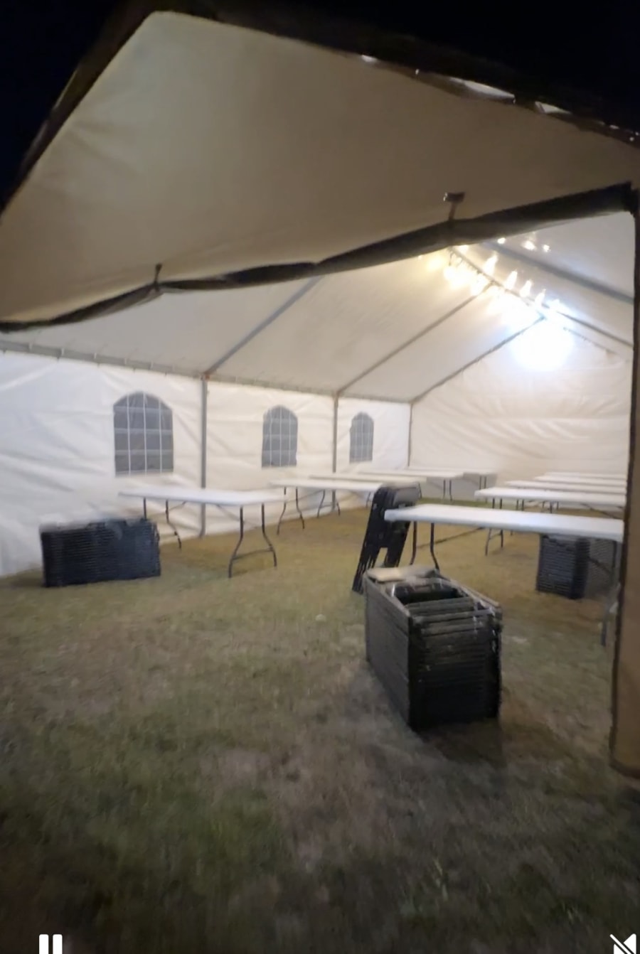 Rent a complete party setup fast. This Event rental Rectangle tent 20x30 8 tables 57 chairs in your area combines a sturdy 20x30 rectangular tent with seating and tables. Perfect for weddings, corporate events, birthday parties, and community gatherings. Fast delivery. Easy setup. Ready-to-use layout. 🎉